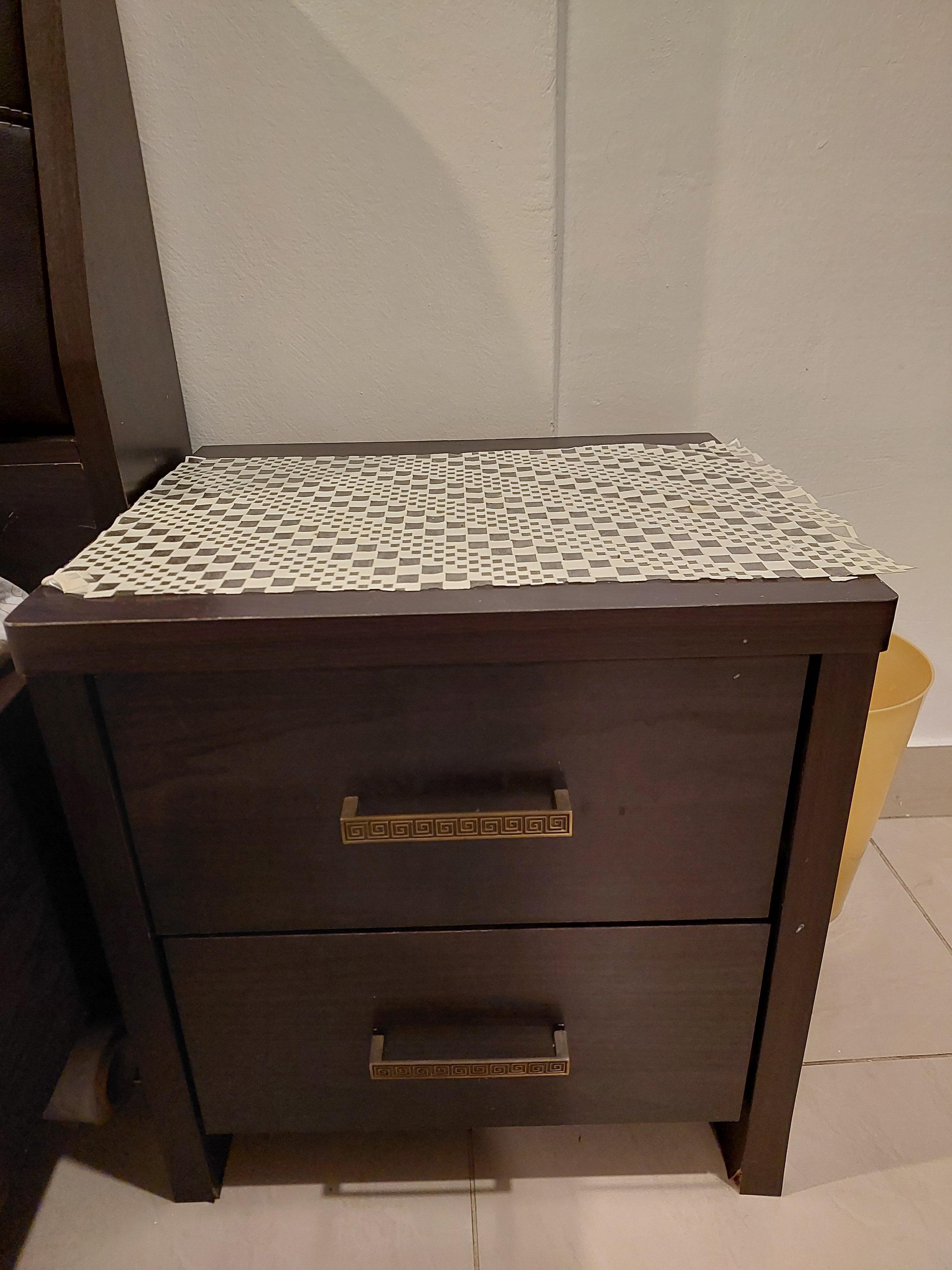 Bed room set includes two side table , dressing table , wardrobe and bed with mattress. Everything is in perfect condition nothing is broken