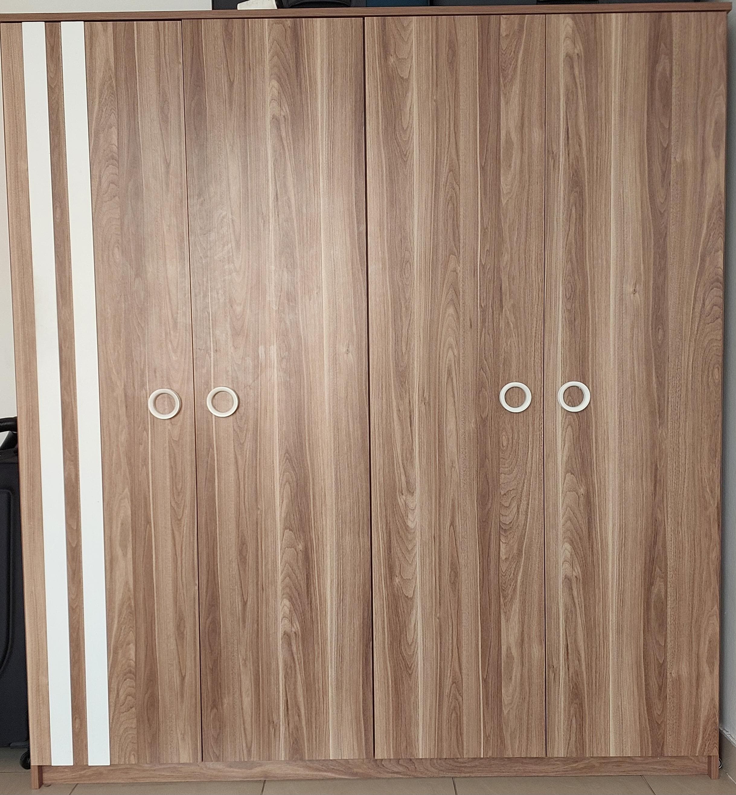 One wardrobe from al-ghanim furniture in perfect condition nothing is broken. 2 places to hang clothes and 4 compartment for folding clothin